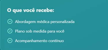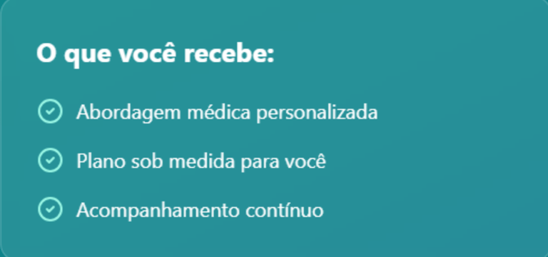 Avaliação clínica-metabólica completa, planos de acompanhamento personalizados sob medida e terapias injetáveis.
